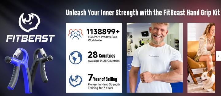 Fitbeast Funny Hand Grip Strengthener Workout Kit (5 Pack) Forearm Grip Adjustable Resistance Hand Gripper, Finger Exerciser, Finger Stretcher, Grip Ring & Stress Relief Grip Ball for Athletes