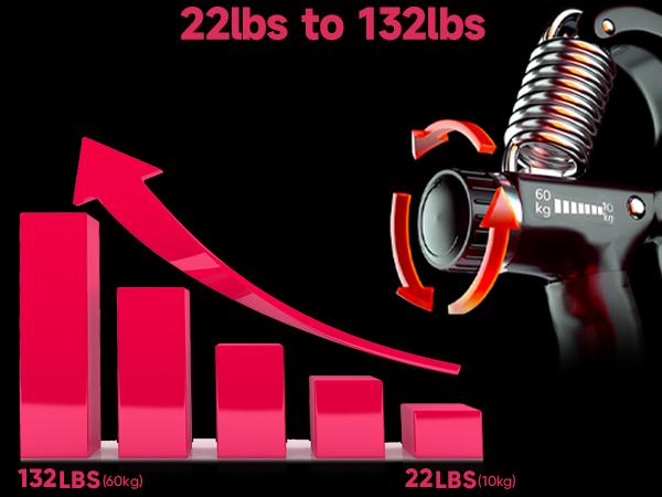 The hand grip exerciser is an incredibly versatile tool that can be used by individuals with varying levels of strength. One of its key features is the ability to adjust the resistance level to suit the user's needs. With a resistance range of 22 lbs to 132 lbs (5kg to 60kg), this tool is perfect for men and women with different strength levels.Easily customize the resistance level from beginner to advanced, allowing you to progress at your own pace. The adjustable resistance levels allow you to progress and challenge yourself over time.